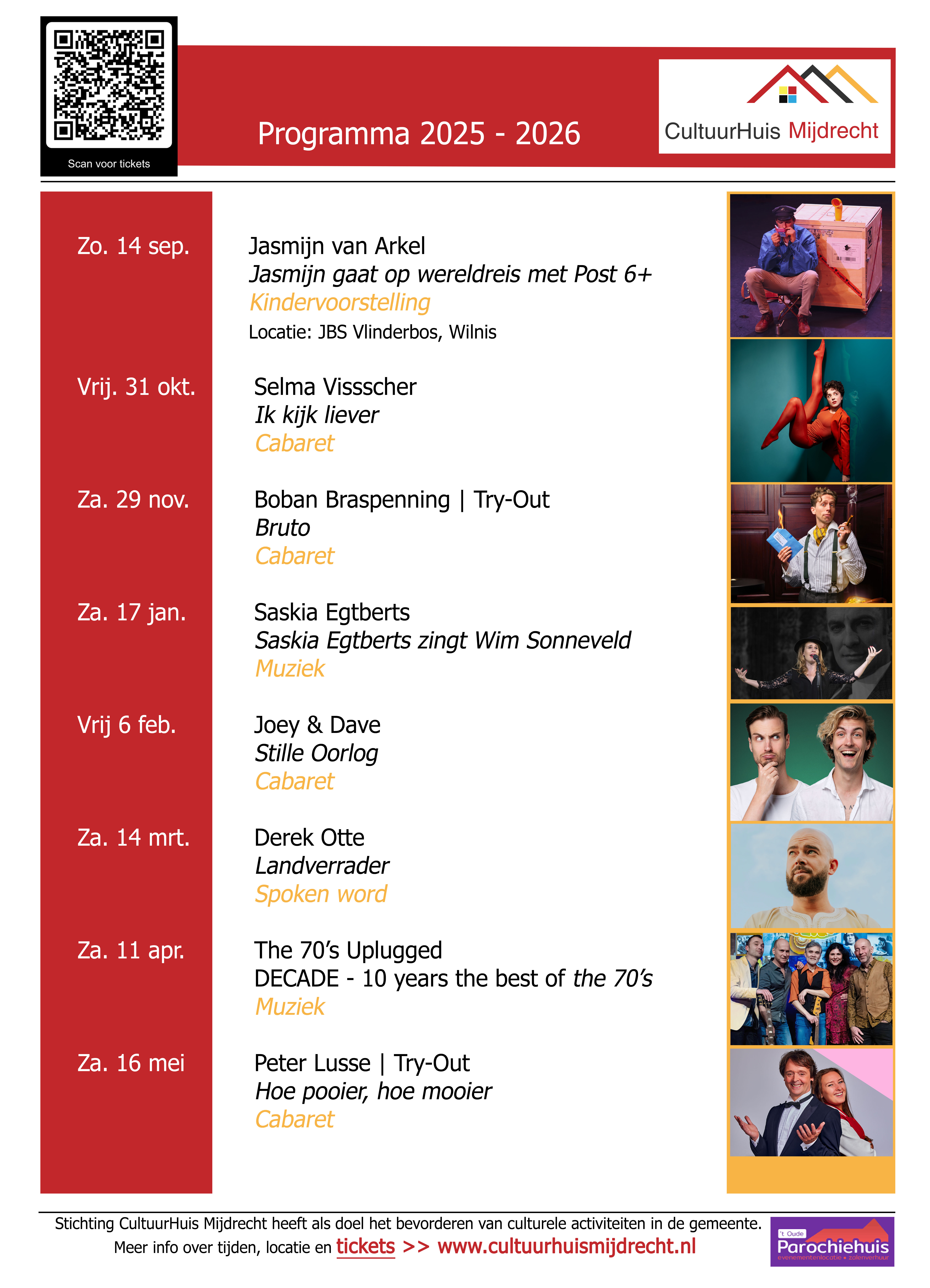 Kaarten € 17,50 bij CultuurHuis Mijdrecht aan de zaal € 20.