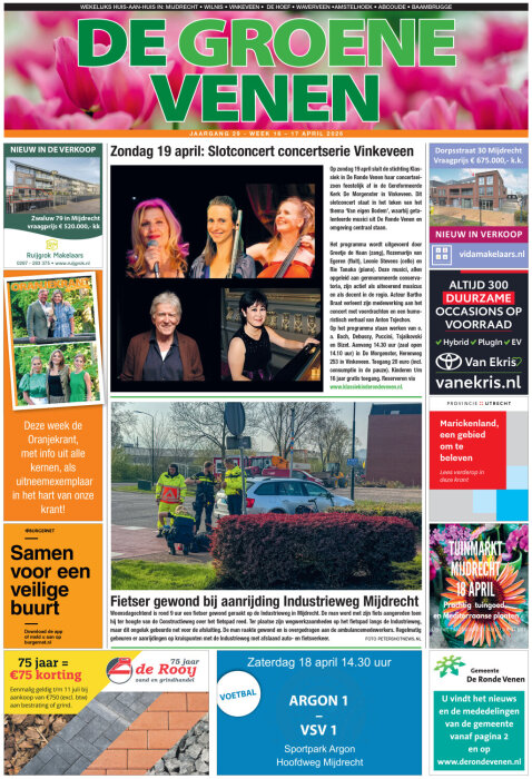 De Groene Venen, dé weekendkrant van De Ronde Venen, is natuurlijk ook online te lezen. De nieuwste editie staat nu op de website van De Groene Venen maar ook hieronder kunt u hem direct lezen. Deze week ook een bijlage, De Oranjekrant met het programma van Koningsdag van alle kernen in De Ronde Venen