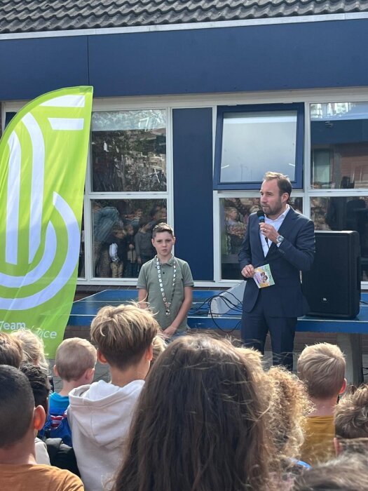 De overhandiging gebeurde onder toeziend oog van veel schoolkinderen op de basisscholen waar de kinderburgemeesters leerling zijn. Nina van Kouwen zit op de Pijlstaartschool in Vinkeveen en kreeg daar het boekje uit handen van wethouder Cees van Uden. Thijs Hoogerdijk is leerling van het Kidscollege in Wilnis en kreeg het boekje van wethouder Maarten van der Greft.