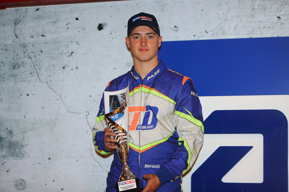Na een knappe inhaalrace en de tweede plaats in het dagklassement werd Sky Defourny zondag in Mariembourg vice-kampioen van de IAME Benelux Series in de Senior Cup. De zeventienjarige karter uit Vinkeveen had tijdens de vijfde en laatste ronde van de titelstrijd alles op alles gezet voor de titel, maar door mechanische pech eerder in het seizoen kwam hij net een paar puntjes tekort.