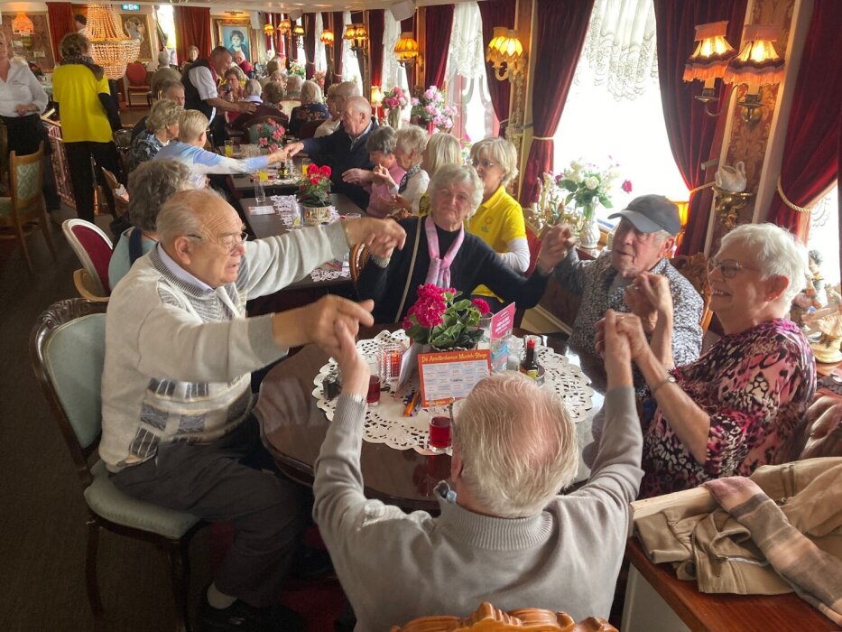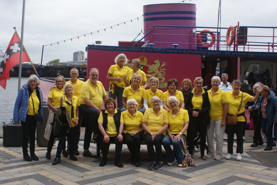 Op een prachtige herfstdag werd aan boord van MS De Jordaan genoten van een rondvaart over het IJ. Niet alleen het uitzicht was mooi, de attente verzorging van de bemanning van de MS De Jordaan was een feest. Tussen alle hapjes en drankjes werd al varend over het IJ genoten van een heerlijke lunch. Uiteraard ontbrak de “wereldberoemde” Muzikale Bingo en werd de sfeer verhoogd door het live entertainment met heerlijke Amsterdamse meezingers.