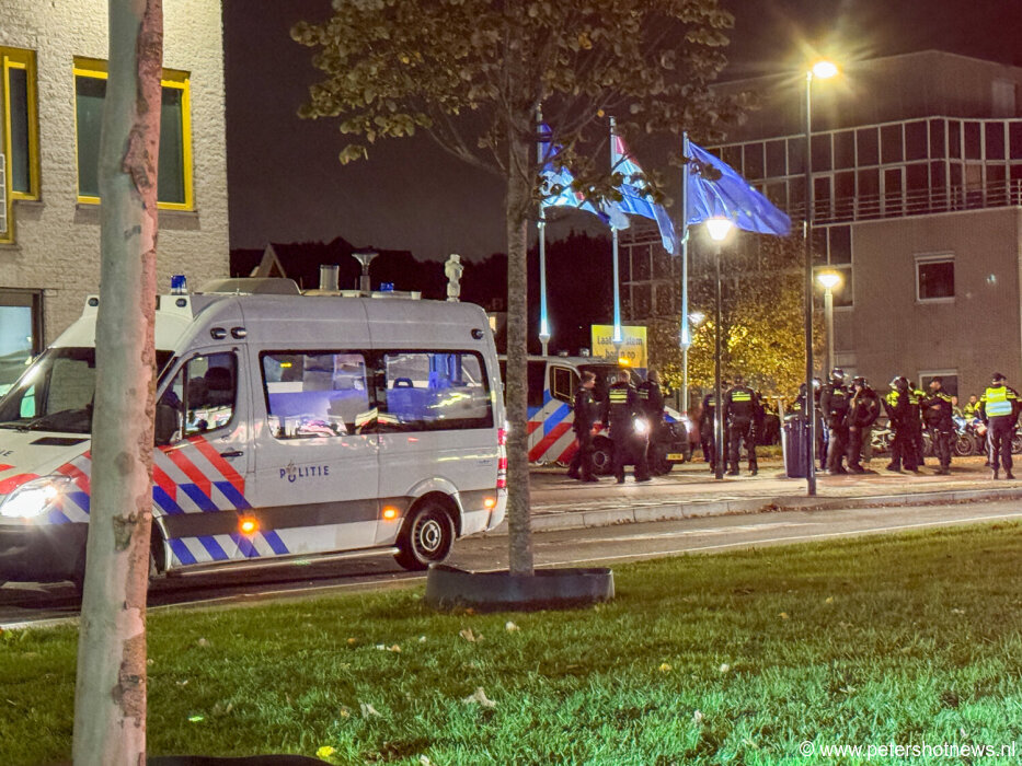 De voor- en tegenstanders van de komst van een azc aan de Wiegerbruinlaan hebben zich verzameld voor het gemeentehuis in Uithoorn, waar vanavond een commissievergadering over asielopvang plaatsvond. De sfeer is aan het einde van het protest omgeslagen, waarna de ME werd ingezet.