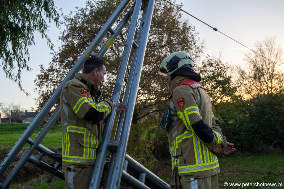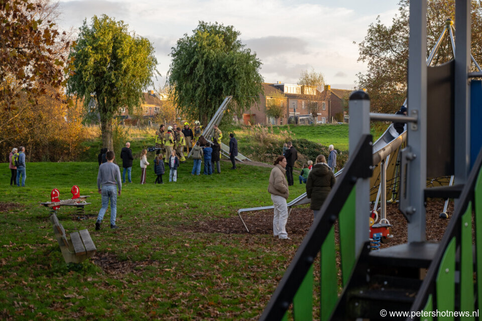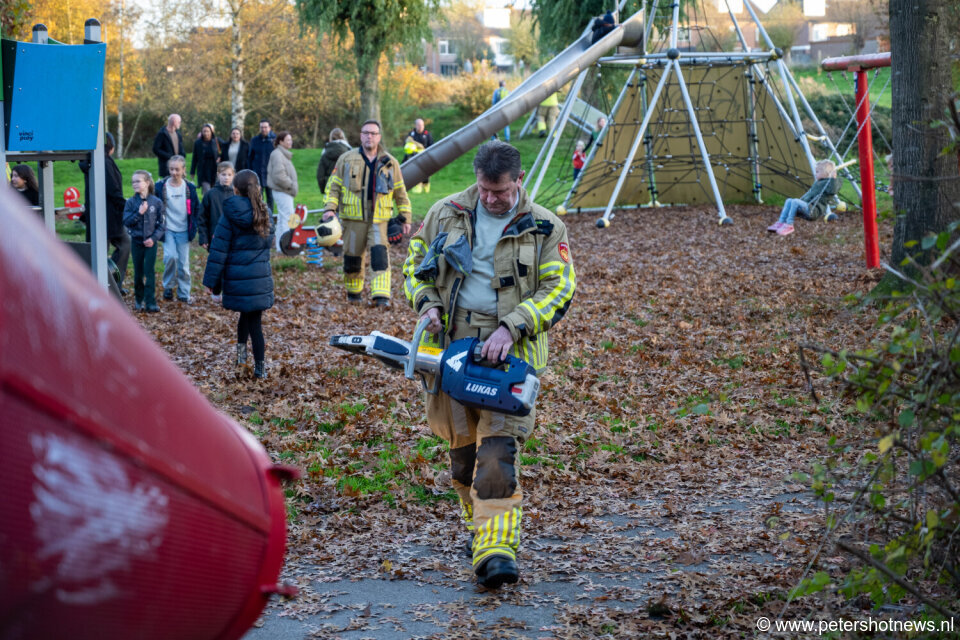 In het park naast de brandweerkazerne was een kindje met een been tussen twee spijlen van een speeltoestel gekomen. Het meisje kon daardoor niet meer zelfstandig loskomen. De brandweer moest uiteindelijk met een speciale spreider de buizen uit elkaar halen zodat het been bevrijd werd.