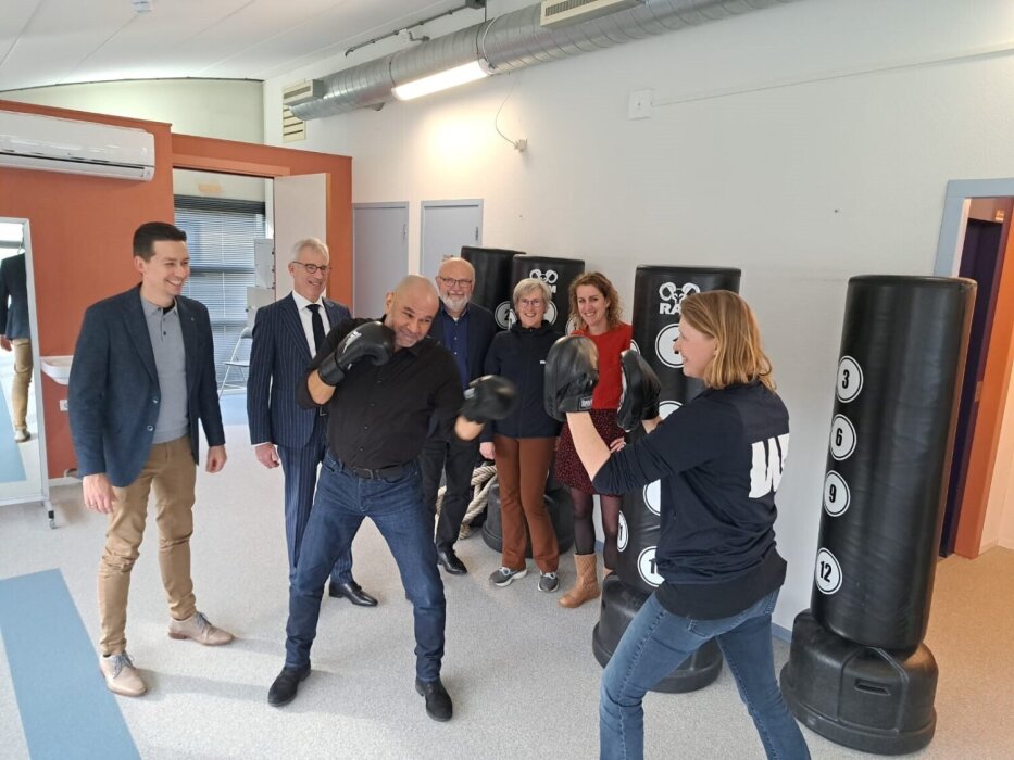 Het college werd ontvangen door eigenaren Caroline Smeets en Claudia Winter. Mede-eigenaar Menno van der Grift kon er door ziekte niet bij zijn. Tijdens de rondleiding viel vooral de trainingsruimte op de bovenste verdieping op, met prachtig uitzicht over de Amstel. Wethouder José de Robles testte zelf de bokspalen uit, aangeschaft met steun van het lokale Sportakkoord. Deze palen worden gebruikt voor ‘contactloos boksen’, een veilige sport voor mensen met bijvoorbeeld Parkinson.
