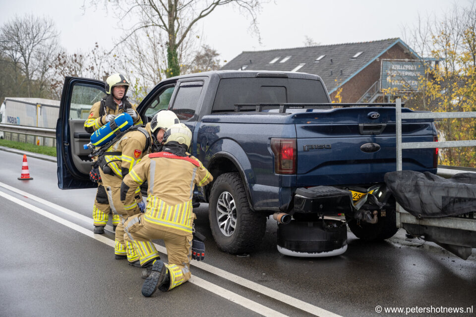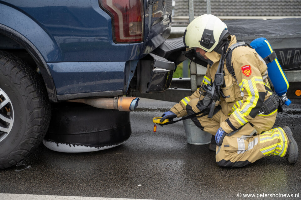 Door de klap kwam de aanhanger los van de auto en ramde de pick-up. Daarbij werd ook de gastank geraakt die onder de auto viel en leegliep. Vanwege het gaslek werd de brandweer opgeroepen. Na ruim een uur was het incident onder controle en kon het bergingsbedrijf de auto's en de aanhanger veilig weghalen.
