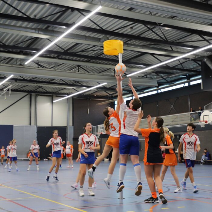 In de voorbespreking gaf coach Niels aan dat het vandaag gaat en staat bij het tempo van de wedstrijd. Door het tempo hoog te houden kan er dynamisch spel gespeeld worden, waardoor je vrije kansen rond de korfzone creëert. Na wat tactisch overleg binnen de vakken floot scheidsrechter Jessy 0m 13:10 de wedstrijd in. De aanval begon met Jeftha, Sander, Bente en Minke, die meteen voortvarend van start gingen. Sander mocht met een mooie korte kans de score openen, waarna Jeftha met een soortgelijke actie ook tot scoren kwam. De gasten uit Maartensdijk lieten het hier niet bij zitten en openden hun score met een doorloopbal. Het inmiddels nieuwe aanvalsvak met Melle, Willem, Roxanne en Tobias mocht het voor ons laten zien, waarbij Willem met een mooie actie vrijkwam voor een doorloopbal en de stand naar 3-1 bracht. De gasten van TZ brachten zichzelf direct met een antwoord op een gat van 1 doelpunt, niet wetende dat ze niet dichterbij dan dit zouden komen, want Atlantis kwam los. Met onder andere mooie doelpunten van Willem, Jeftha en Bente kwam de Mijdrechtse ploeg op een 9-4 voorsprong. Met een mooie actie van Jeftha vlak voor rust, die met een strafworp beloond en benut werd, gingen de ploegen de kleedkamer in. Coach Niels zag veel mooie punten in deze wedstrijd. Het doel was tot dusver behaald, maar het was nu zaak om het tempo en de felheid vast te houden. Luuk werd in het team gebracht en ook Jasmijn was inmiddels al tussen de lijnen beland. Beiden lieten dit meteen zien, door een mooi schot te scoren. Alsof de wedstrijd al binnen was kwamen de slordigheidsfoutjes. Tweemaal Zes leek met vlagen feller en nog wat energie bewaard te hebben. Zo kwamen ze halverwege de tweede helft toch weer iets mee, wat de tussenstand op 15-8 bracht. Het maakte het niet spannend, maar het was wel zaak dat het Mijdrechtse team de energie bleef geven. Na wat aanwijzingen en een korte peptalk van de coach leek het team het ook weer door te hebben. Ook in deze fase moesten we wel laten zien dat we sterker waren en tot het eind kunnen vechten. Zo vielen ook weer de doelpunten. Onder andere Melle, Luuk en Jasmijn lieten met hun doelpunten het team verder uitlopen, waar Tweemaal Zes niet veel kansen meer kreeg. Het laatste schot van Bente bracht het door Bos Meubelstoffeerderij gesponsorde team op de 20 doelpunten, waarna de wedstrijd met een eindstand van 20-9 werd afgefloten. Een wedstrijd waarbij het team echt heeft laten zien waar ze zo hard voor werken en waarin ze van begin tot het eind alles hebben gegeven. Een leuk feitje: door deze winst gaat het team ongeslagen het nieuwe jaar. Ook in de najaarscompetitie op het veld werd er geen wedstrijd verloren.