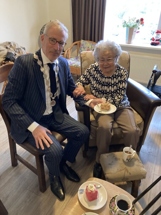 De burgemeester en mevrouw Berg zijn geen onbekenden van elkaar. Ook bij eerdere verjaardagen kwam hij persoonlijk langs om haar te feliciteren. Dat maakte het bezoek extra speciaal.
