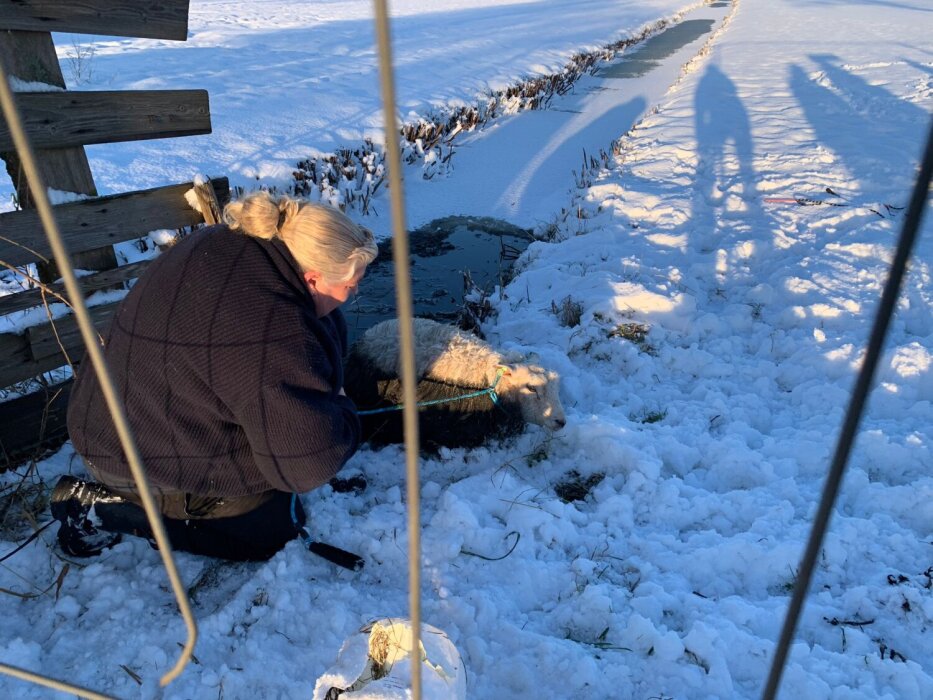 Langs de Oosterlandweg is maandagmiddag een schaap door het ijs gezakt in een sloot. Het dier kwam in een wak terecht en kon zich nauwelijks bewegen. De dierenambulance en de brandweer rukten uit om het schaap te redden.