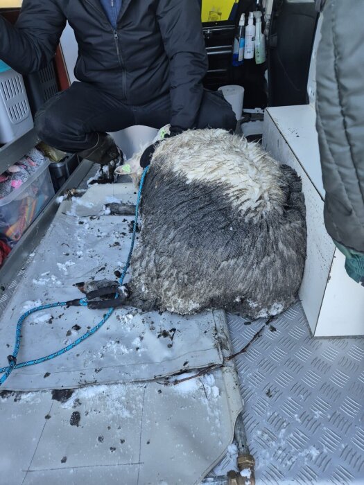 Bij aankomst lag het dier met alleen de kop en een deel van de nek boven water. Het schaap was doorweekt en onderkoeld, waardoor het moeilijk te verplaatsen was. Een medewerker van de dierenambulance bevestigde alvast een sliplijn om de nek, in afwachting van de brandweer.