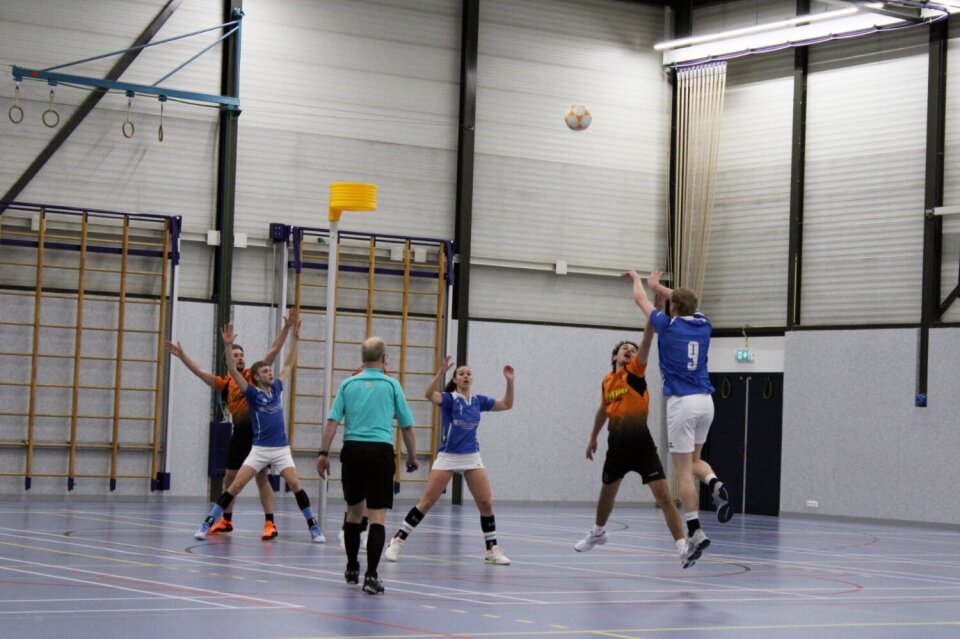 Blijven lachen Met twee zuivere schoten kwamen de bezoekers direct na rust weer langszij en twee minuten na rust was het 13-13 (doelpunt Mathijs). Langzaamaan kreeg KIOS wat meer grip op het spel. De veelvuldig toebedeelde vrijeworpen en strafworpen werden gretig verzilverd. Binnen tien minuten was de stand (ondanks een sublieme treffer van Zoë van Dasler) 14-17 in het voordeel van KIOS. Maar opnieuw toonde de thuisploeg veerkracht. Vijf minuten voor tijd was het 18-18, door doelpunten van Luka van der Vliet (2x), Levi Kroon en Nieko Dankelman.