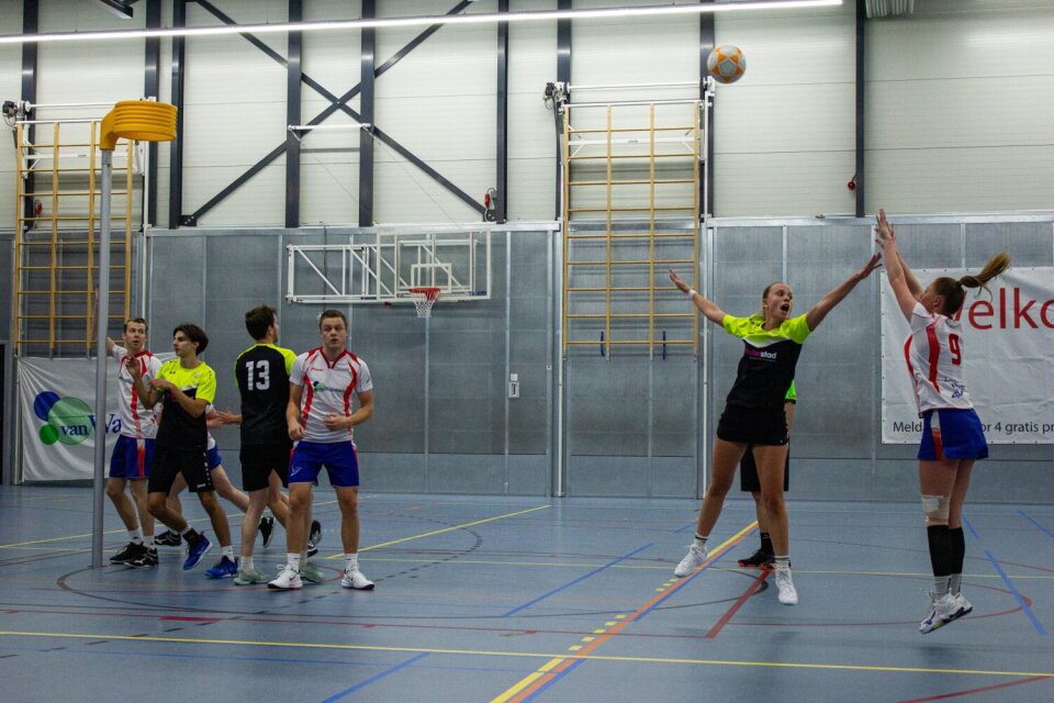 In de eerste aanval stonden: Rick, Kevin, Maud en Kim. In de eerste verdediging begonnen: Sander, Lars, Lotte en Lisanne