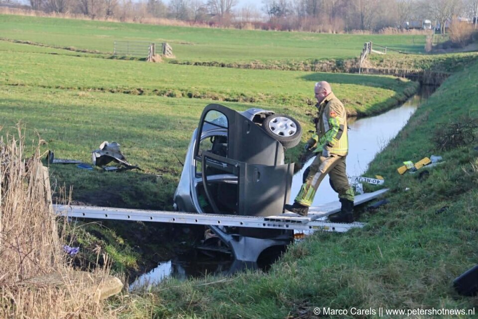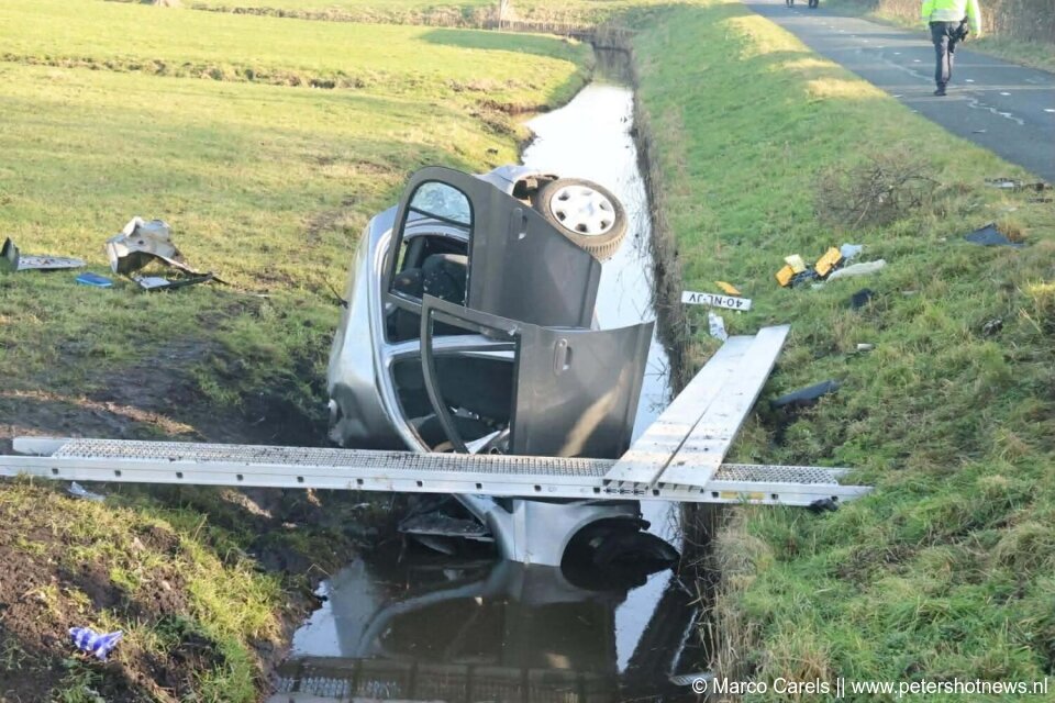 Eerst botsten de auto en de vrachtwagen tegen elkaar aan, waarna de auto vijf meter verderop in een sloot terechtkwam. Het lukte de automobilist niet om zelf uit de auto te komen. Daar hielp de brandweer mee.