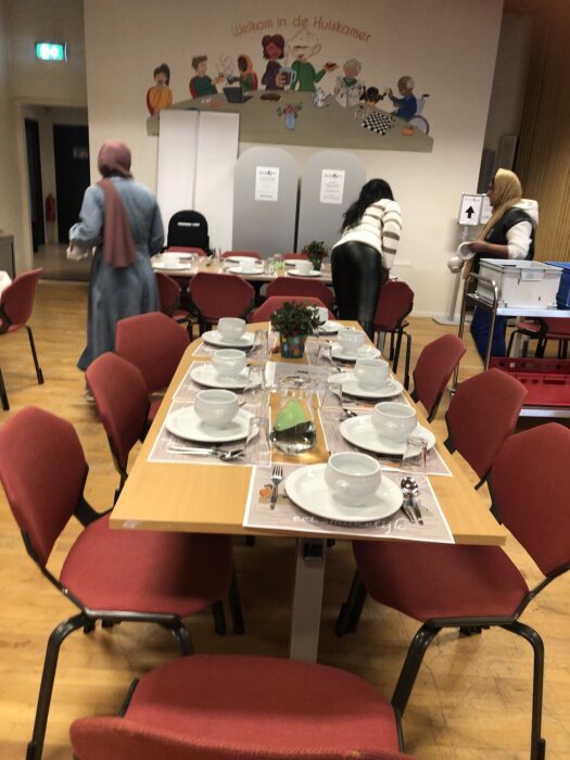 Vrijwilligers van VluchtelingenWerk, van het Open Huis, van de taallessen voor vluchtelingen en ook uit eerdere bezoekers beginnen bijtijds met het inrichten van de zaal en dekken de tafels voor zo’n 70 bezoekers. De koks komen hun gerechten brengen en dan gaan om 17.30 uur de deuren van Open Huis De Rank open. Je vindt het Open Huis aan de Pr. Bernhardlaan 2 in Mijdrecht.