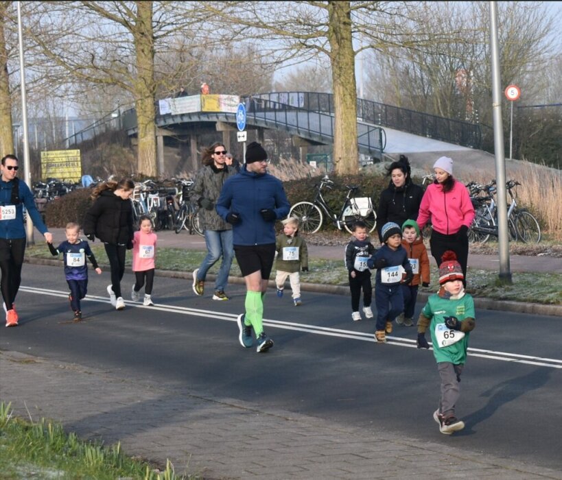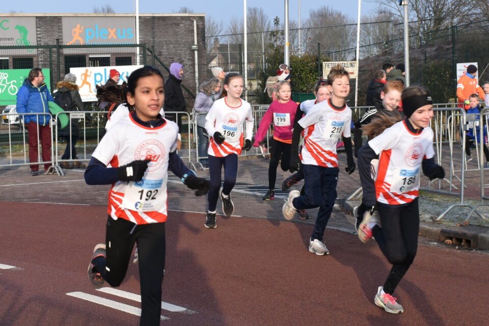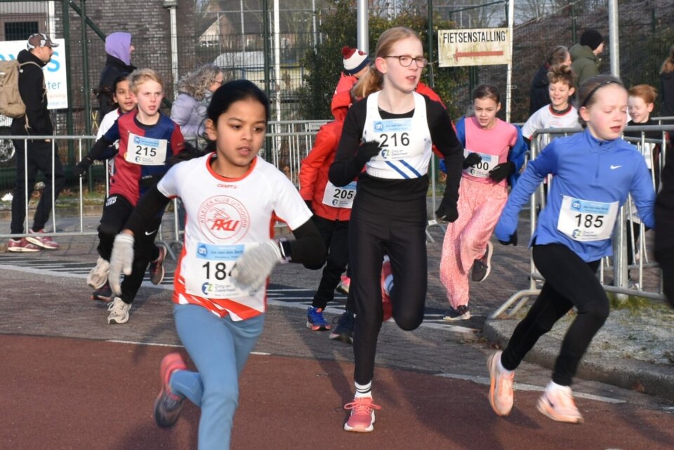 Vorig jaar deden er 98 kinderen mee, dit jaar waren dat er bijna 150! Waar er vorig jaar één grote start was, werd er dit keer gestart in twee leeftijdsgroepen. De kinderen van 9 t/m 11 jaar gingen om 10.15 uur van start, gevolgd om 10.30 uur door de jongste groep t/m 8 jaar. Dit bleek ook de grootste groep te zijn. Ondanks de opsplitsing was het bij de jongste kinderen een drukte van belang. Zo fanatiek als ze al kunnen zijn op deze leeftijd! Bij de start was het even zoeken naar ruimte, maar daarna verliep alles soepel.
