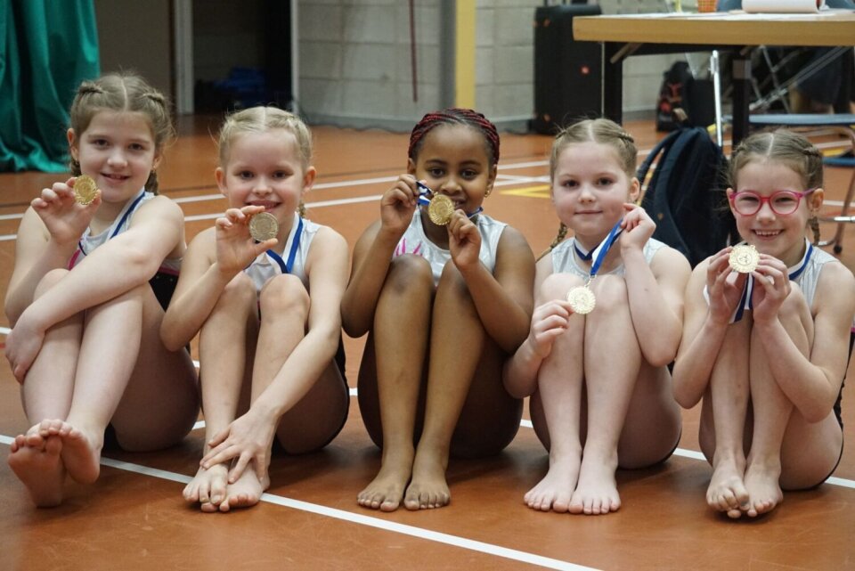Aan het einde van de dag gingen alle turnsters met een medaille en een grote glimlach naar huis. Een geslaagde, sportieve en gezellige dag waar iedereen met trots op kan terugkijken.