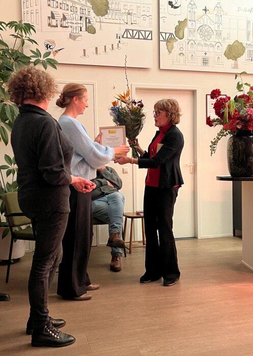 Wijkcentrum Bilderdijkhof voldoet aan de richtlijnen en heeft afgelopen donderdag tijdens het Alzheimer Café het certificaat ‘Dementievriendelijke ontmoetingsplek’ ontvangen uit handen van Truda Schrama van Alzheimer Nederland, afdeling Amstelland en Meerlanden. Beheerder Daniëlle en coördinator Ontmoetingsgroepen Jenneke Valentijn zijn trots. ‘We laten hiermee zien dat we er voor iedereen zijn. Zo hopen we mensen te stimuleren om actief te blijven’.