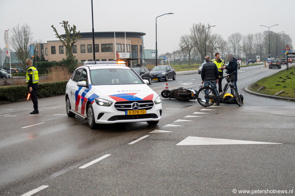 Het ongeluk gebeurde ter hoogte van de kruising met de Energieweg. Een scooterrijder kwam bij het ongeluk ten val en raakte gewond. Wat er precies gebeurd is, is niet bekend.
