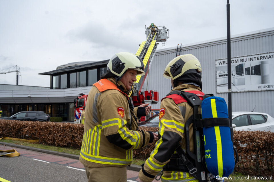 De brand bij het bedrijfspand brak rond kwart voor twaalf 's ochtends uit op het dak, waarna de brand is doorgeslagen naar de eerste verdieping.