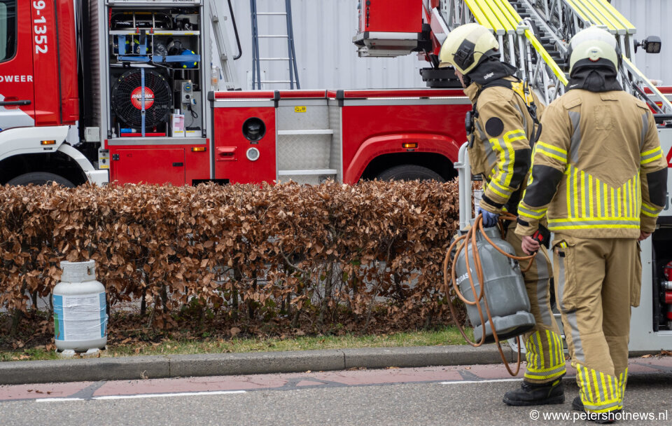 De brandweer heeft spullen van het onderhoudsbedrijf van het dak gehaald.