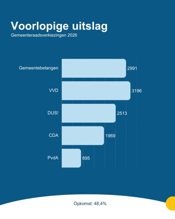De voorlopige uitslag van de gemeenteraadsverkiezing in Uithoorn is bekend. In totaal bracht 48,4 procent van de stemgerechtigde inwoners een stem uit. Daarmee ligt de opkomst hoger dan bij de vorige verkiezingen in 2022, toen 47 procent van de inwoners naar de stembus ging.