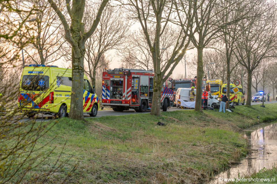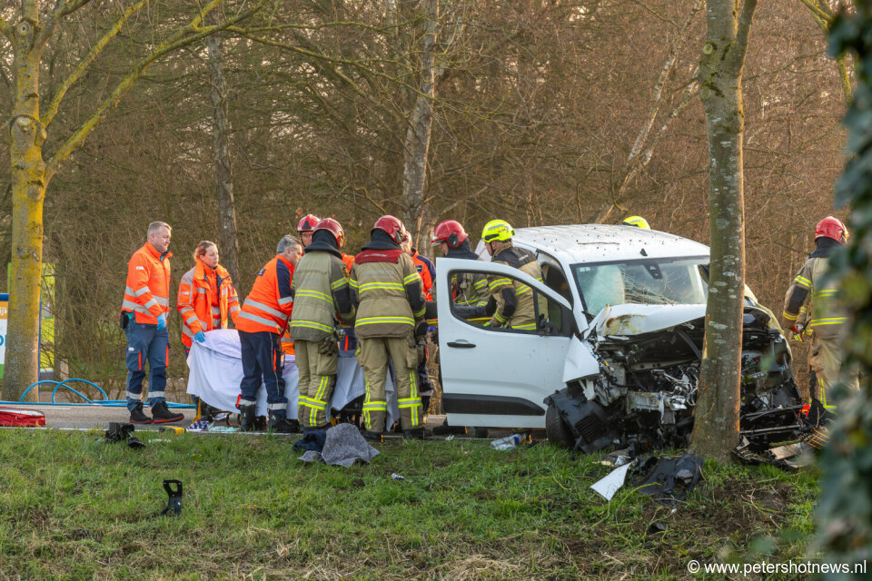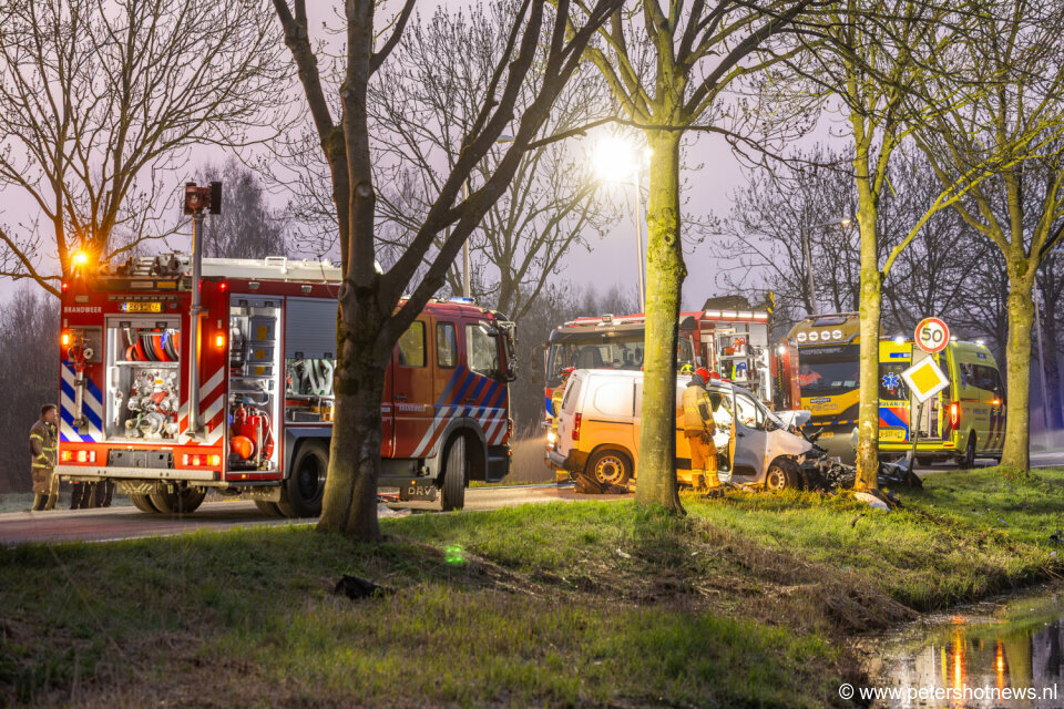 Hulpdiensten werden rond 05:10 uur gealarmeerd voor het incident ter hoogte van de Hogendijk. Door nog onbekende oorzaak botste de bestelbus frontaal tegen een boom. De impact van de botsing was groot, waardoor de bestuurder vast kwam te zitten in het voertuig.