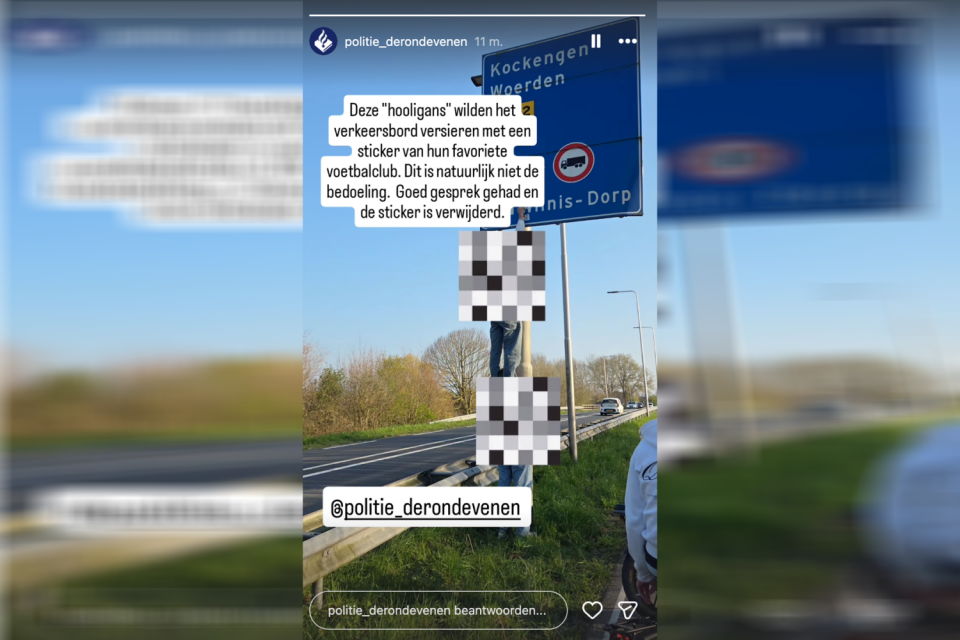De politie sprak de jongens toe en maakte duidelijk dat het beplakken van verkeersborden niet is toegestaan. De supporters moesten ter plekke de sticker verwijderen.