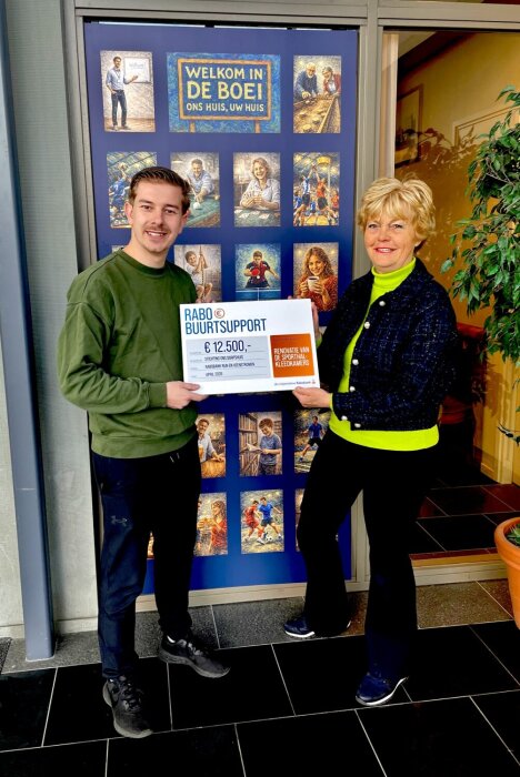 Dorpshuis De Boei in Vinkeveen heeft een belangrijke financiële bijdrage ontvangen voor de renovatie van haar kleedkamers. Namens Rabobank Rijn en Veenstromen overhandigde Corna Voorbij een cheque van € 12.500 aan Levi Kroon, die deze namens Stichting Ons Dorpshuis in ontvangst nam.