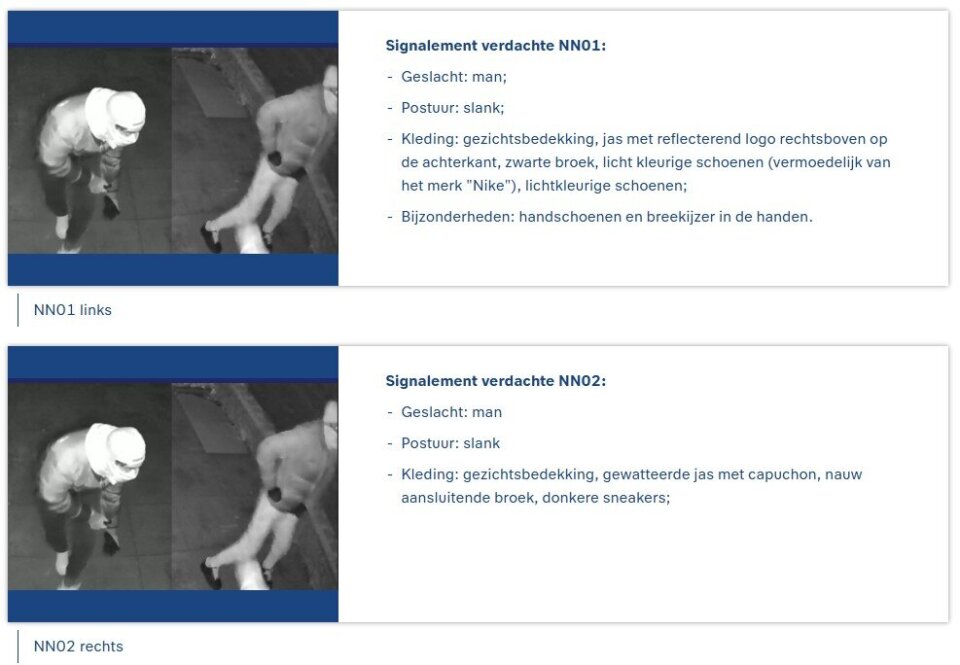 De politie is op zoek naar informatie over deze verdachten. Heb jij iets gezien of weet je meer? Neem dan contact op via de Opsporingstiplijn (gratis) 0800 - 6070 of maak gebruik van het tipformulier.