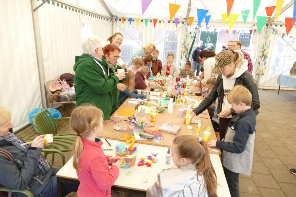 Ook in de feesttent was het een drukte van belang. Kinderen konden er hun creativiteit kwijt met allerlei knutselactiviteiten. Door de grote belangstelling moesten sommigen zelfs even geduld hebben voordat er een plekje aan de knutseltafel vrijkwam.