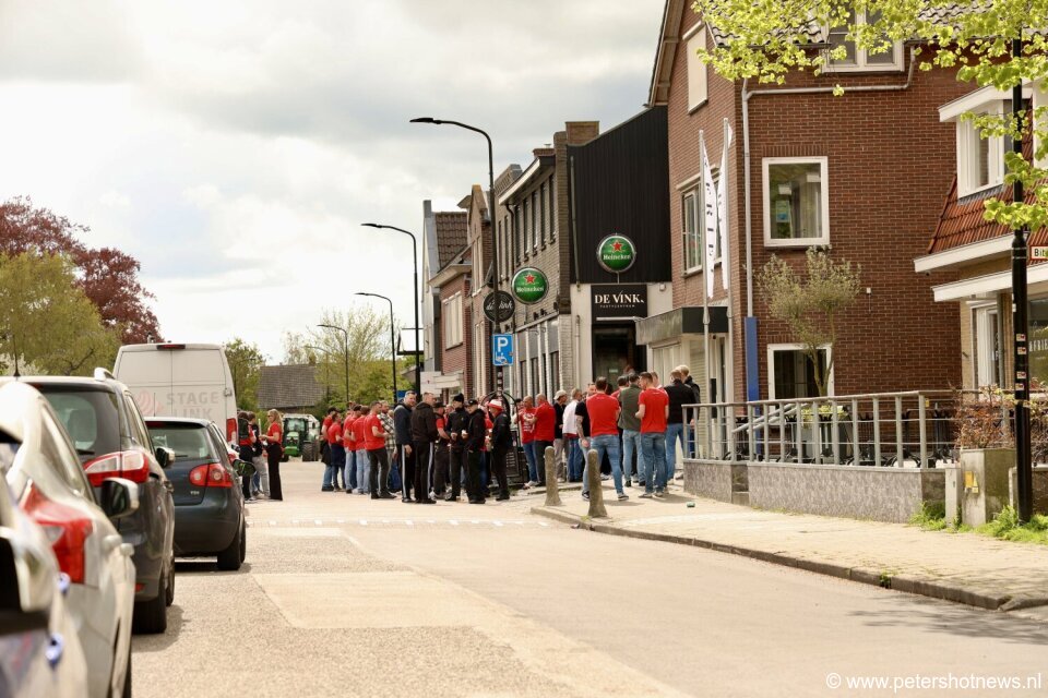 De fans kwamen met zeker zeven touringcars naar het dorp om gezamenlijk een drankje te doen in een café aan de Herenweg. De sfeer was volgens omstanders gemoedelijk. Tientallen supporters verzamelden zich op straat voor het café, terwijl ook de Kerklaan vol stond met geparkeerde touringcars.