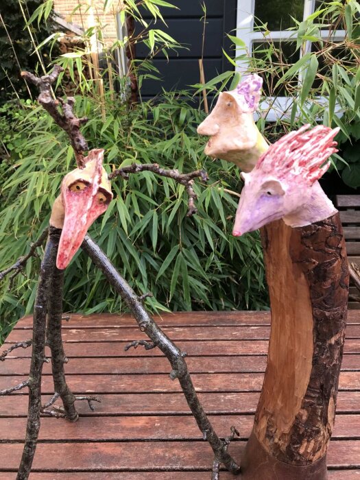Bart Bakers is een veelzijdig maker, bekend om zijn expressieve tuinkunst. Met natuurlijke materialen zoals hout, takken en keramiek creëert hij fantasierijke wezens die doen denken aan dieren. Daarnaast ontwerpt en maakt hij uniek tuinmeubilair, waaronder zijn populaire kleurrijke houten banken. Voor deze expositie brengt hij ook werk voor binnen mee, zoals vloerlampen en bijzettafels.