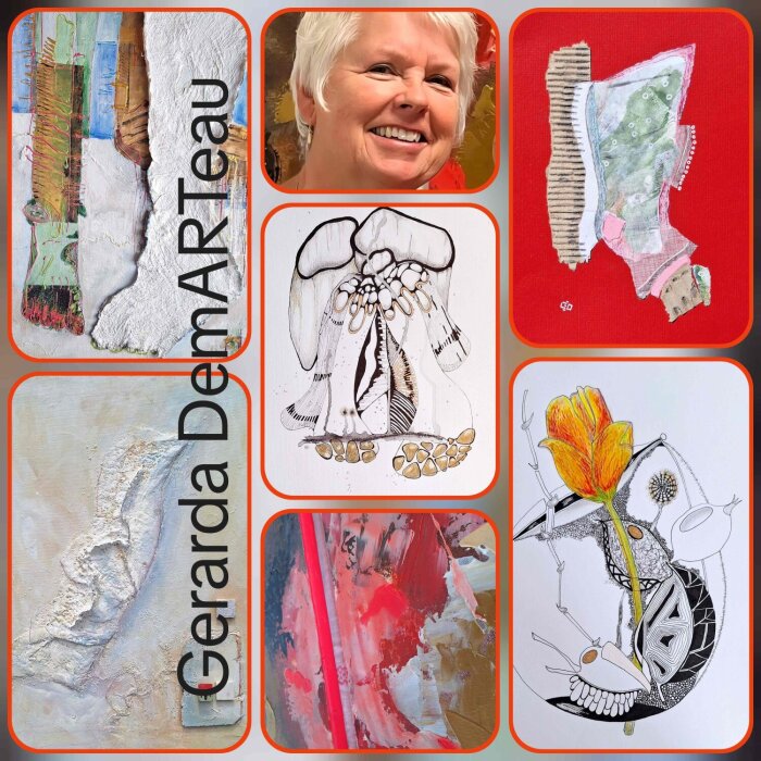 Gerarda Demarteau heeft het beeldhouwen in haar bloed, maar verkent daarnaast ook met plezier andere disciplines. Haar tekeningen ontstaan intuïtief, zonder vooropgezet plan, en komen voort uit pure fantasie. Ze werkt met fineliners en kleurpotlood, vaak verrijkt met subtiele gouden accenten. In haar schilderijen experimenteert ze met acrylverf in combinatie met uiteenlopende materialen zoals gips, textiel, papier en touw, wat haar werk een speels en gelaagd karakter geeft.