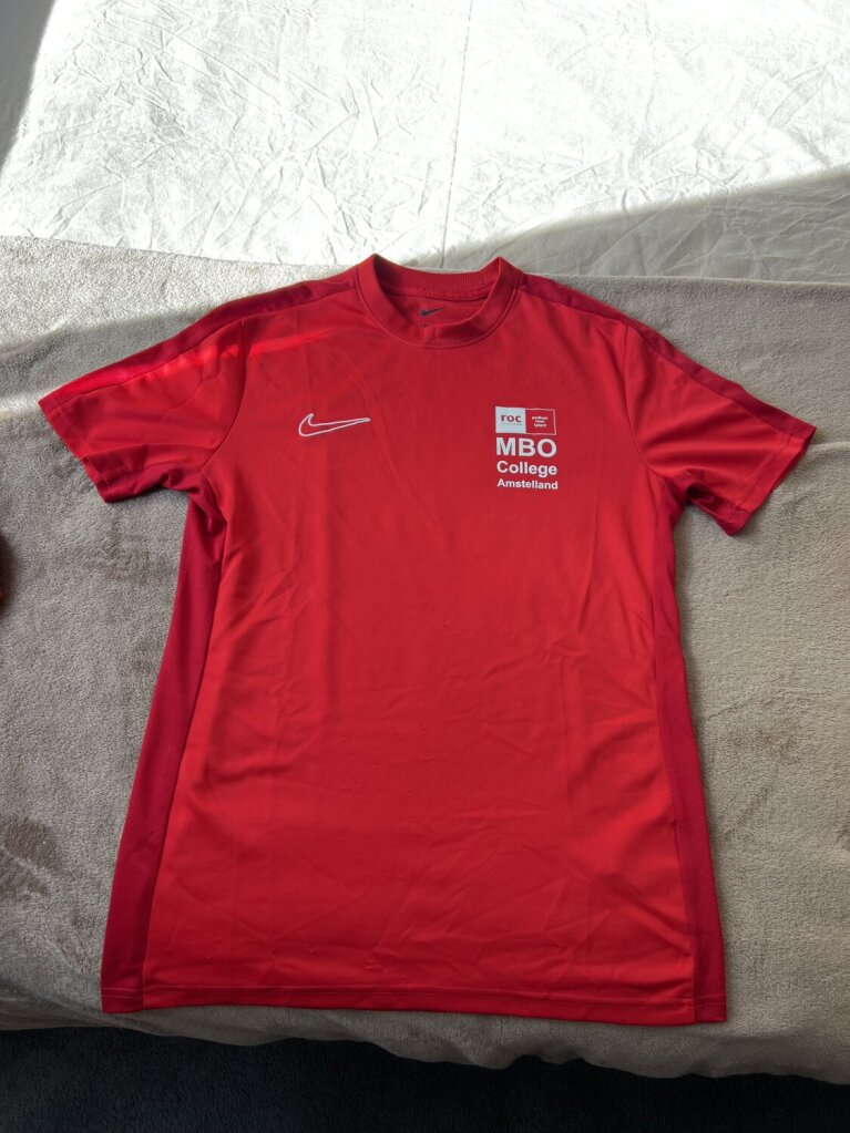 Twee t shirts en een vest van Nike. Voor de opleiding Sport en Gezondheid in Amstelveen. 1 shirtje is beschadigd aan de voorkant maar nog prima te gebruiken. Maat m.