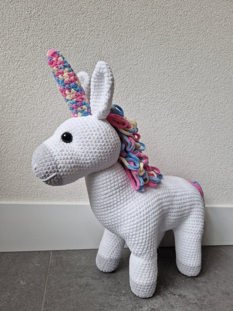 Deze Eenhoorn knuffel is nieuw en gehaakt.