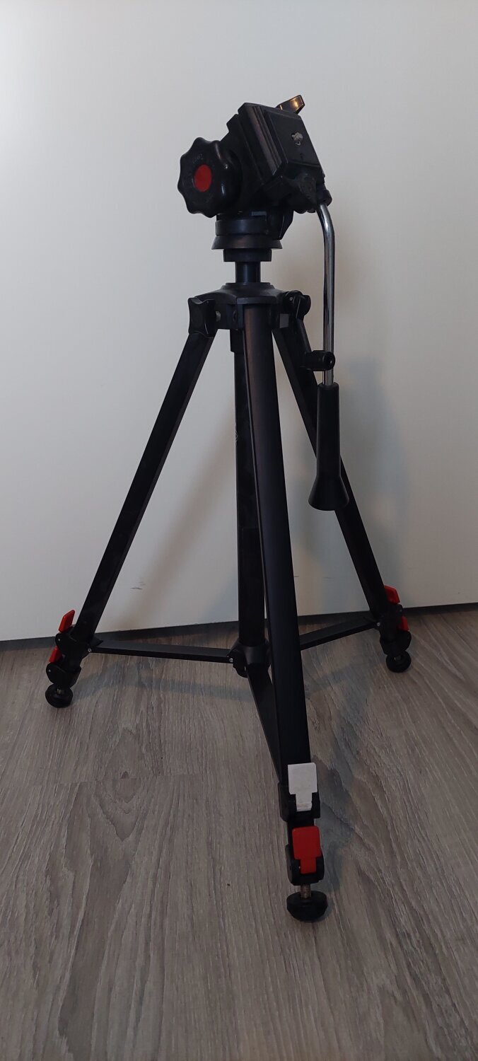 Snel en eenvoudig op te stellen 2-traps fotostatief, merk King Best. Hoogte ca. 130 cm. Met snelkoppeling.
