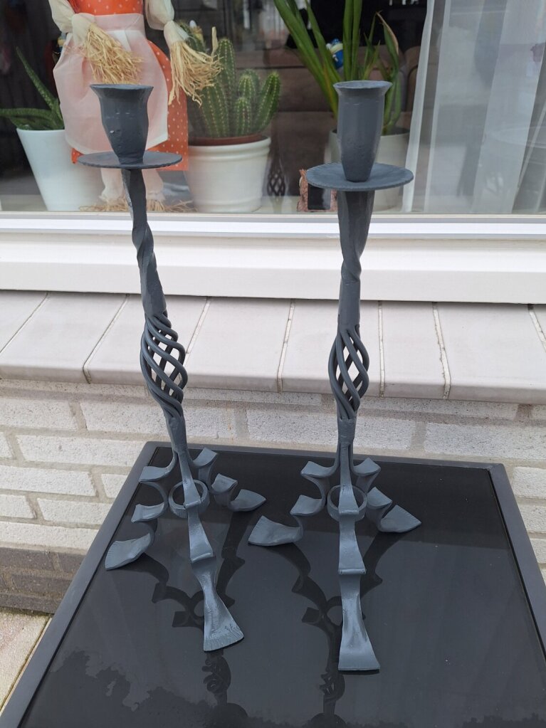 2 hand gesmede kaarsen standaards 40cm hoog