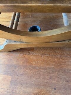 Houten schommelstoel op vast frame met kussen