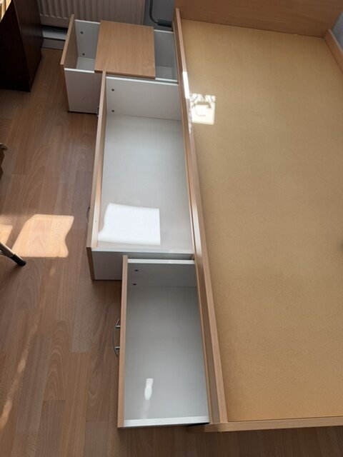 Licht houten eenpersoonsbed 200x90cm met 3 rol-opberg-lades